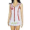 Trang phục được thiết kế ôm dáng, tông màu trắng phối đỏ nổi bật, tôn lên đường cong cơ thể một cách quyến rũ. Áo liền váy có khóa kéo phía trước giúp dễ dàng điều chỉnh mức độ gợi cảm theo ý muốn. Chất liệu vải mềm mại, co giãn tốt, mang lại cảm giác thoải mái khi mặc và không gây khó chịu cho da.