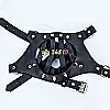 Điểm nhấn của sản phẩm là các dây đai bản lớn cùng vòng tròn kim loại hai bên giúp cố định chắc chắn, tạo cảm giác bị kiểm soát hoàn toàn cho người đeo.